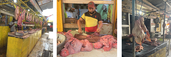 Dann die Fleischgasse (kein Zwang, wer nicht möchte, muss da nicht durch). Frisch geschlachtete Hühner, Schweine und Rinder. Nicht in Fleischereien zerlegt, sondern direkt auf dem Markt.
