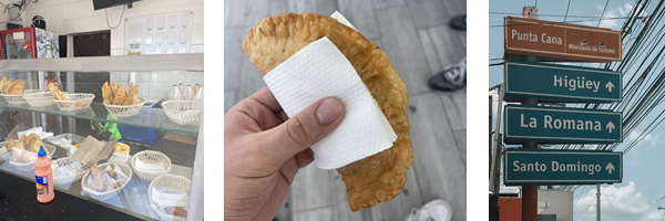 Im Anschluss fahren wir eine Runde durch Hiquey und durch den Ort „La Otra Banda“ nach Veron. Hier essen wir eines der Lieblingsessen der Dominikaner. Die "Empanadas", fritierte Teigtaschen gefüllt mit Huhn, Rind, Schwein oder auch vegetarisch. Frisch zubereitet direkt von der Hand in den Mund.